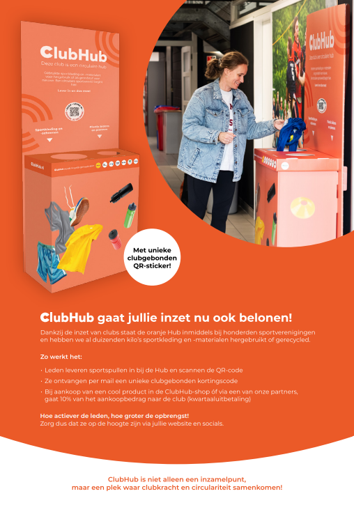 Wist je dat je met het inleveren van oude sportkleding en bidons in de ClubHub niet alleen bijdraagt aan een circulaire sportwereld, maar ook de club kunt ondersteunen?